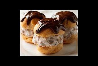 - Remplissez les choux d'une cuiller à café de crème glacée de vanille et posez sur un plat,jusqu'à ce que tous les profiteroles soient fourrés.