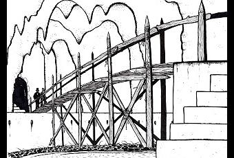 Les deux hommes traversent le pont. — Je n’aime pas cette eau Larsan. J’ai traversé de nombreuses mers dans ma vie de marin, mais jamais rien vu de pareil ! s'exclame le capitaine. — Vous croyez vraiment que c’est de l’eau mon cher Némo ! Le magicien dirige sa baguette en direction du lac. En dessous, à perte de vue, des milliers de rats immobiles forment un étrange lac mortifère. — Il vaudrait mieux ne pas les réveiller, ils rongeraient ce pont avant qu’on ait fait le moindre pas ! chuchote Larsan.