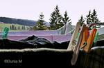 Souvent les gestes les plus anodins amènent les plus grands bonheur. Aujourd’hui, j’ai éprouvé une joie intense à suspendre ma lessive au balcon en regardant la montagne d’en face. L’air tempéré, clément, sentait le printemps. Cela faisait plus de vingt ans que je n’avais pas étendu du linge à l’air libre. Je n’avais jamais eu de balcon ou de jardin pour le faire. J’ai toujours suspendu mon linge à l’intérieur. Les dernières années passées avec Angèle, nous avions un séchoir cependant, le meilleur électroménager, ne parvient jamais à déposer sur le linge la délicieux parfum que lui donne l’oxygène d’un séchage à l’extérieur. Après avoir suspendu mes deux corbeilles, j’ai laissé la porte fenêtre ouverte. L’odeur de propre qui entrait dans ma chambre bureau ma remplie de bonheur. Je me suis sentie immensément riche. Mon balcon c’est mon luxe. Je suis riche.