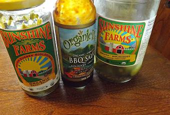 La relish est délicieuse et sont prix est abordable:5.49$ en spécial reg.:6.99$ La sauce BBQ est très bonne et sucré : environ 5$ ( le prix n'est plus sur la bouteille) Sans oublier les cornichons :) c'est la première fois que je trouve des cornichons biologique et je peux vous dire que nous achetons un pot par semaine surtout que je suis enceinte hi hi! prix:8,99$ en spécial reg.: 10,99$ tout ces produits se trouve au marché Tau. Je vous laisse deviner se que j'ai mangé ? ..... des végéburger!!!