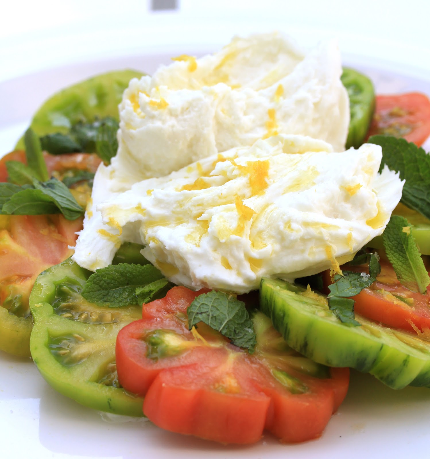 Maintenant que je suis en mode " vacances ",je suis passée à une cuisine d'été alors rien de meilleur que des tomates multicolores , de la mozzarella di buffala , un filet d'huile d'olive fruité et la touche Donna Hay , un zeste de citron et de la menthe . Ces 2 derniers ingrédients dynamisent cette tomate/mozza , j'ai beaucoup aimé . Pas besoin de cuisine plus compliquée quand les ingrédients de base sont simples .