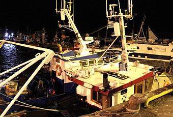 Les chalutiers et autres bâteaux de pêche s’éclairent un à un, les marins pêcheurs préparent leur matériel puis lentement, aux commandes de leur embarcation, ils quittent le port et s’éloignent de la côte.