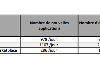 Si aujourd’hui on compte plus d’1.2 millions d’applications disponibles, les 3 Applications Store (App Store, Google Play et le Windows Phone Store) n’ont pas le même rythme de croissance et d’évolution. Chaque jour, en moyenne 2 371 applications sont publiées et 3 326 applications sont mises à jour.