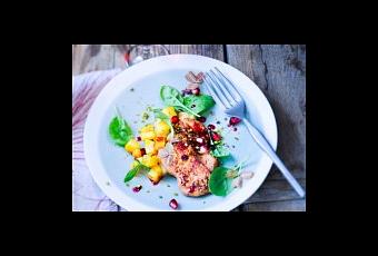 Tailler la grenade en deux, la vider, garder quelques grains pour la décoration des assiettes.