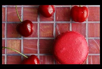 Le macaron se compose de deux coques et d’une garniture, ici une confiture à la cerise, gingembre et anis.
