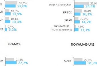 La deuxième place du podium revient donc à Internet Explorer et ses 26,4 %, l’année dernière, le navigateur de Microsoft était encore largement premier avec 34,6% d’utilisateurs. La troisième place revient à Firefox qui perd 3,3 points par rapport à juin 2012 pour s’établir à 24,4%. Le constat est identique en Espagne où Chrome accapare 33% de PDM.