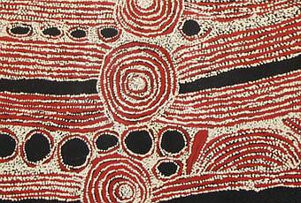 Dans cette œuvre, les motifs cérémoniels que sont cercles concentriques et lignes proposent une vision satellitaire du site de Wirrulnga, un point d’eau logé au cœur d’un affleurement rocheux à
