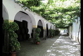 La bodega occupe un très large espace en plein centre historique de Jerez - un endroit spectaculaire pour y élaborer le vin s'il en est un, puisque l'endroit est entouré d'un haut mur que les gens d'ici surnomment avec ironie "les secondes fortifications de Jerez". Le passage qui donne accès au vignoble lui-même était une rue de la ville, jusqu'au début du siècle dernier, quand le roi Alfonso XIII est venu visiter la célèbre bodega et a fait fermer la rue pour pouvoir faire sa visite en paix (lire: sans le peuple). Après coup, et sans doute avec l'influence notable de la famille Domecq, la rue a été privatisée par le roi et fait maintenant partie du domaine de la bodega.