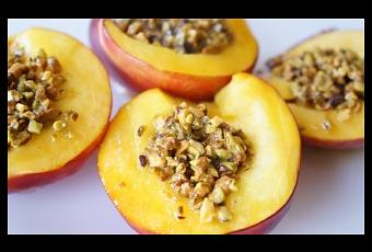 Je garnis les nectarines de cette préparation.