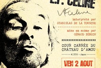 Grand moment culturel, littéraire, émotionnel, grand moment tout court à venir bientôt en la cour carrée du magnifique château d'Amou, vendredi 2 août, 20h30. Stanislas de La Tousche invite magistralement un Céline hallucinant de vérité (jusqu'au trouble de la ressemblance physique) à refaire un tour parmi les vivants pour expliquer, pour s'expliquer, pour dire, pour jacter. Pas pour se justifier. Juste une causerie. Car faut dire les mots...