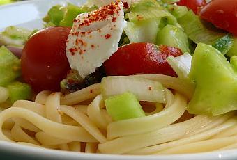 Le soleil est de retour, et.....bientôt on va se plaindre qu'il fait trop chaud!!ben non.......cette salade à préparer pour plusieurs, rapide et délicieuse , avec du fromage de chèvre frais , un vrai délice ......pour profiter des légumes de saison de son jardin, poivrons, courgettes, concombres et tomates.Ingrédients:(4pers.)