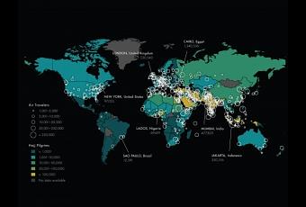 Les deux tiers de tous les pèlerins proviennent de pays à faibles ou très faibles revenus : L’analyse révèle que sur les 16,8 millions de voyageurs qui ont pris l’avion vers l’Arabie saoudite, la Jordanie, le Qatar et les Emirats arabes unis entre juin et novembre 2012 (soit un mois avant le Ramadan et jusqu’à un mois après le hajj), 51,6% venaient de seulement 8 pays, l’Inde, l’Egypte, le Pakistan, la Grande-Bretagne, le Koweït, le Bangladesh, l’Iran et Bahreïn. Contrairement au SRAS, plus de la moitié de tous les voyageurs aériens au départ de l’Arabie Saoudite, de la Jordanie, du Qatar et des EAU retournent vers des destinations finales situées dans les pays à faibles ou très faibles revenus. Les deux tiers de tous les pèlerins du hadj proviennent ainsi de pays à faibles ou très faibles revenus.