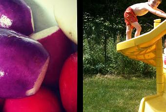 Une semaine d'été typique, beaucoup de soleil, de la chaleur à la limite du supportable, beaucoup de visites aux jeux d'eau! Aussi: un moment clé dans ma vie et celle de Rachel, je lui attache désormais les cheveux (j'en rêvais!). De la bonne bouffe santé, cerises Rainier & pâtes courgettes (recette ici). Quelques aperçus de la déco du shower d'une amie. Un peu de lecture.