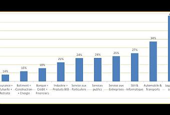 La moyenne du taux de réclamation est de 25 %, ce chiffre cache une grande disparité entre secteurs d’activité comme on le voit sur le graphique :