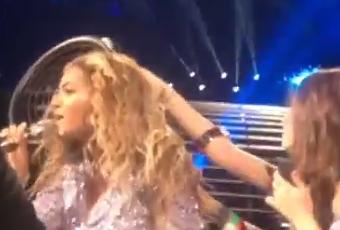 Alors qu'elle chantait "Halo", un fan a tenté de lui décrocher sa perruque en plein concert.