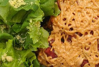 Succulente lasagne grandement inspirée de Chloe's Kitchen avec une mesclun du potager et fauxmage parmesan