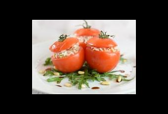Remplir les tomates avec la préparation au riz, remettre le chapeau, réserver au frais.