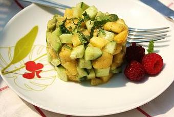 Encore une petite recette facile et rapide à préparer, c'est la saison qui veut ça. En plus pas besoin d'allumer le four par cette grosse chaleur. Je ne pense pas souvent à marier les fruits aux légumes pourtant c'est si bon....