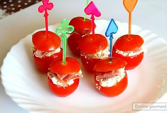Voici juste une petite recette toute simple et rafraîchissante à servir à l'apéritif, très bonne et idéale en cette saison. Il faut juste un peu de patience et de temps pour farcir les petites tomates si vous en faites beaucoup. Une façon parmi tant d'autres de les préparer mais ça peut donner des idées d'accompagnement pour un apéritif...