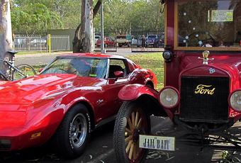 Nous avons vu environ 30 voitures (ce qui n’est pas beaucoup) toutes différentes. Ford était très bien représentée avec ses Mustang 68, Cobra 78, Ford Model T omnibus 1921 ou encore la Ford Thunderbird tout doirt importée de Floride. Il y avait une Corvette StingRay aussi, laquelle était magnifique mais moins puissante que le moteur V8 embarquée et préparé par John Sorensen dans la voiture de police. Un vrai dragster !