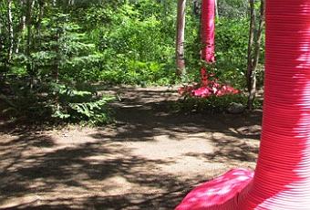 Cet environnement rose est composé de corde de latex enroulée autour des troncs des arbres jusqu’au sol. Puis, la corde continue de s’enrouler autour de la base des arbres. Lorsque quelques arbres sont enveloppés ensembles, la corde qui les unis crée des fauteuils de style modulaire. Aménagée selon les directives des concepteurs new-yorkais N. Croft & M. Macleod, l’installation se moule au site retenu par l’équipe du Festival.