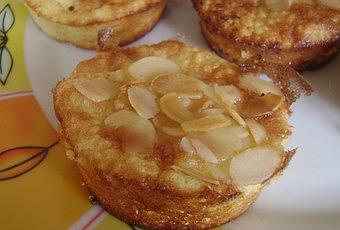 3) Verser la pâte dans des moules à muffins en silicone, saupoudrer d'amandes effilées et enfourner 15 minutes th°6. Laisser tiédir et démouler