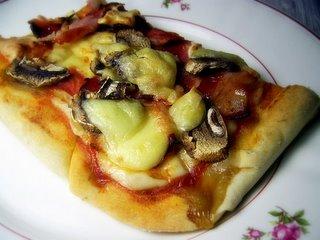 Répartir les champignons tranchés et les tranches de provolone. Enfourner à 220ºC pendant 30-35 minutes. Retirer la pizza du four et servir sans attendre.