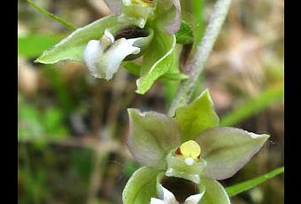 Epipactis helleborine (Épipactis hélléborine, Épipactis à larges feuilles) est une grande Orchidée estivale des lisières, friches, vergers, forêts de feuillus et de conifères. C'est une espèce très polymorphe, notamment pour la couleur de ses fleurs, vert-jaunâtre plus ou moins teintées de rouge-brun à violet.