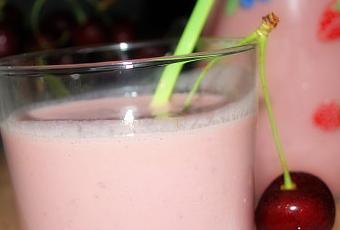 Placez les cerises, les morceaux de banane, le jus de citron, le yaourt et le lait dans un blender. Mixer longtemps afin d’obtenir un mélange homogène et onctueux. Verser la préparation dans les verres et servir les smoothies tout de suite afin qu’ils restent frais.