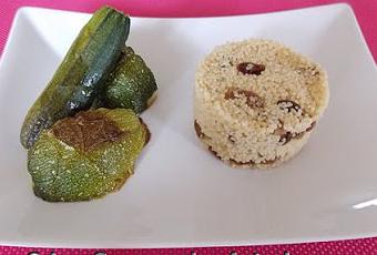 J'ai servi ma semoule aux raisins secs dans un cercle avec mes courgettes confites.