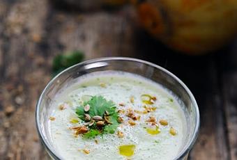 Et vu le temps je me suis dit que les jolis concombres d'Arnaud finiraient bien dans un gaspacho tout en fraîcheur.Gaspacho de concombre très coriandreIngrédients : 1 concombre rond (ou ¼ de concombre " normal ") – 3 ou 4 càs de yaourt du type bulgare – 2ou 3 tiges de coriandre – 1 trait de citron vert – 1càc d'huile d'olive - ¼ de càc de la coriandre en grain – sel et poivreCommencez par faire dorer la coriandre en grain dans une poêle bien chaude. Versez-la ensuite dans un mortier et écrasez-la grossièrement. Pelez et épépinez le concombre puis coupez la chair en morceaux.Mettez les morceaux dans un mixer et ajoutez les tiges de coriandre, le citron vert et l'huile d'olive, salez et poivrez et mixez finement le tout.Ajoutez le yaourt et mixez rapidement juste pour mélangez.Servez dans des petits verres en terminant par quelques gouttes d'huile d'olive et une pincée de coriandre en grains.