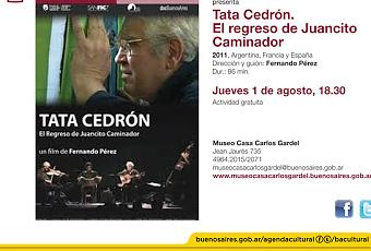 Le chanteur, guitariste et compositeur Juan Tata Cedrón sera demain, jeudi 1er août 2013, à 18h30, la vedette de la nouvelle séance du cycle cinématographique Pasión de celuloide du Museo Casa Carlos Gardel, rue Jean Jaures 735, dans le quartier dit de l'Abasto.