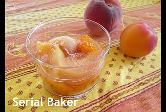 Peler les pêches, les découper en tranches de taille égale. Disposer les tranches de pêche dans la papillote. Laver l'abricot et couper en tranches de même épaisseur que les pêches, les disposer au-dessus des tranches de pêches. Cuire au micro-onde à pleine puissance 1 min. Ouvrir la papillote, ajouter deux cuillères à café de miel (ou de sirop d'agave) et ajouter les pistils de safran. Refermer la papillote, cuire au micro-ondes à pleine puissance 1 min 30. Laisser reposer sans ouvrir la papillote pendant 5 min. Normalement, les fruits doivent rendre du jus. Disposer dans deux verrines avec le jus. Laisser refroidir à température ambiante jusqu'au moment de servir.