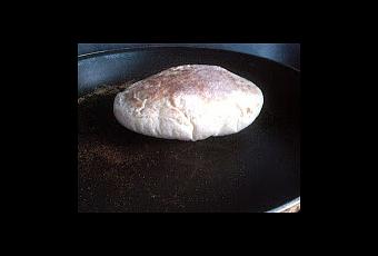 NB: les temps de pousse sont toujours donnés à titre indicatif car ils dépendent de la température ambiante de la pièce.Dans une poêle chaude, cuire le pain à feu vif pendant 1 min et le tourner.Le pain gonfle et retombe, c'est signe d'une cuisson réussie!Continuer la cuisson à feu moyen pendant 10 min. en tournant le pain constamment, cela évite à la semoule qui l'enrobe de brûler.