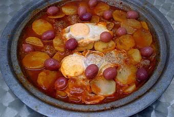 Faire des boulettes avec la viande hachée.Les faire cuire dans la sauce.Ajouter les rondelles de pommes de terre si désiré.
