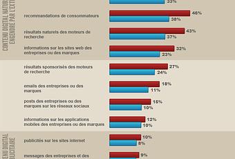 L’étude est basée sur environ 58 000 sondés américains et plus de 15 000 pour l’Europe et constate également que 46% des consommateurs font confiance aux avis d’autres consommateurs contre environ 9% aux messages publicitaires.