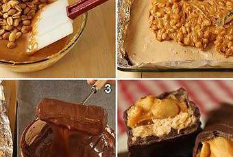 Dans une casserole, faites fondre le beurre avec le sucre et le lait concentré. Portez à ébullition puis baissez le feu et laissez cuire en remuant pendant 10 minutes.Retirez du feu et ajoutez le fluff, le beurre de cacahuète. Versez dans le moule et conservez au congélateur durant 2 heures.