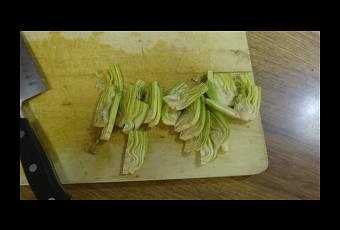 Pour cette recette vous avez besoin d’un artichaut, de sel, d’une friteuse ou poêle pour faire frire et d’un bon couteau. Le plus important de cette recette c’est la découpe de l’artichaut. Pour obtenir un artichaut croquant et tendre á la fois, il faut retirer au moins deux couches de feuilles extérieures pour arriver aux feuilles un peu plus jaunes et tendres du coeur de l’artichaut. Ensuite on coupe 1/2cm de la tête de l’artichaut et la base toute en gardant le coeur. Le résultat doit ressembler á cela (résultat pour 1’artichaut moyen):