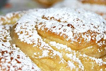 130 g de lait ribot300 g de farine50 g de sucre1 càs de levure fraîche1 oeufle zeste d'une orange bio50 g de margarine2 càs de poudre d'amande (ou des raisins secs ou une bonne pâte à tartiner)sucre glace