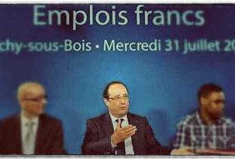 Hollande ne part donc pas en vacances, même pas en weekend prolongé. Mercredi, il visite Clichy-sous-Bois, banlieue considérée comme « chaude » même en plein hiver. Sa visite de quelques heures est une opération médiatique, évidemment. Sarkozy avait latrouille de se rendre en banlieue. Hollande s'en amuse encore. Nous aussi. Ce jour-là, le déplacement permet à quelques journalistes et analystes de découvrir un dispositif voté l'an dernier mais complètement oublié, les « emplois francs ». L'appellation est curieuse. Il s'agit d'emplois subventionnés à hauteur de 5.000 euros, réservés à l'embauche en CDI d'un moins de 30 ans en recherche d'emplois depuis au moins 12 mois et résidant dans une Zone Urbaine Sensible.
