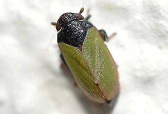 Tête aplatie noire avec les antennes très courtes sortant de la face inférieure de la tête.