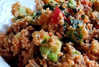 Une fois les légumes découpés( tomate, thon, avocat, concombre, poivron ),bien mélanger avec la semoule et le thon égoutté