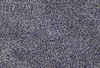Photo 1 : Abie Loy Kemarre, « Bush Leaf – Optic », Utopia, 2013 - Acrylique sur toile. 122 x 122 cm - Photo : Clayton Glen © Arts d’Australie • Stéphane Jacob.