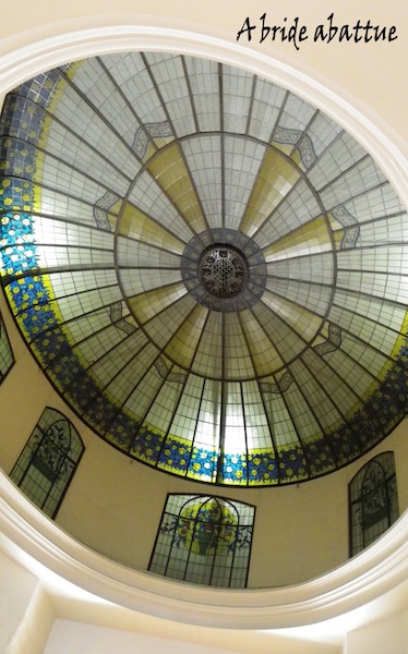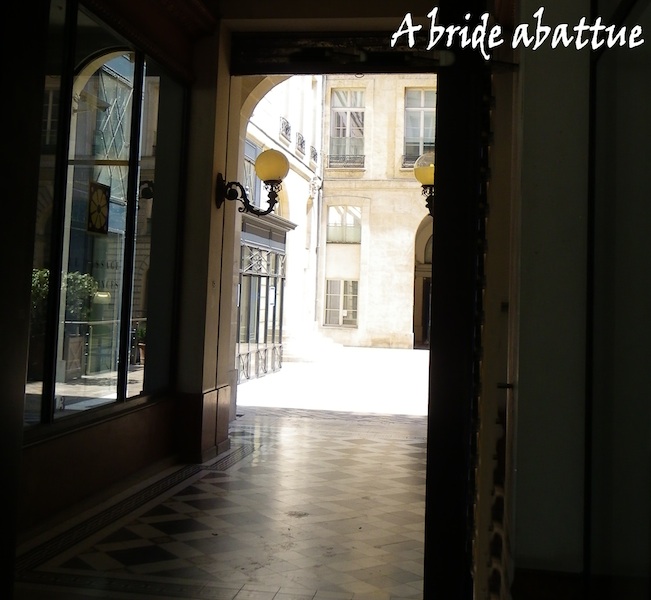 Rendez-vous me fut donné à deux pas du métro Richelieu-Drouot, à l'entrée du Passage des Princes, sur le pavage si joliment conservé.Je m'imaginais qu'on allait nous parler de la coupole merveilleuse dont je pris un cliché pendant l'attente. Mais non, notre guide nous entrainera à l'opposé.