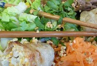 Saupoudrez le tout ce cacahuètes concassées et du mélange d’herbes fraîches. Déposez les nems et servez aussitôt arrosés d’un filet de Nùoc Mâm.
