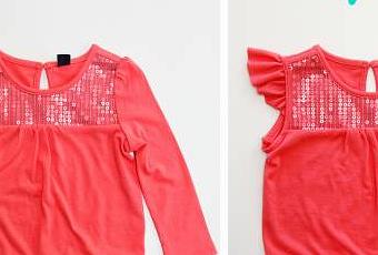 Il suffit en effet de couper les manches mais autant faire les choses bien et transformer les manches longues en manches volantées dont les petites filles raffolent.