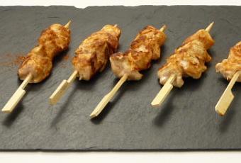 Le lendemain, monter les morceaux de volaille sur les brochettes et les faire cuire à la poêle ou à la plancha.