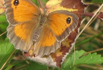 Les ailes brun orangé, avec des bords brun foncé et un ocelle (tache arrondie dont le centre et le tour sont de deux couleurs différentes, évoquant un œil, dixit Le Grand Robert) à double noyau blanc à l’apex (sommet ou pointe) des ailes antérieures. On ne perd pas son temps ici, on vient d’apprendre deux mots nouveaux en une seule phrase !