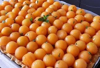 Aujourd'hui ce sont mes recettes chez vous ! J'ai eu la grande joie de recevoir un mail de Nicole, qui a réalisé pour ses copines du club de tarot de Bourges la tarte au melon et muscat de Rivesaltes!Nicole a eu beaucoup de succès avec sa tarte et ça se comprends, elle est sublime !