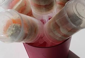 Voici un petit amuse bouche rigolo a manger ... (pas forcement pratique je suis d'accord) , on peut l'emporter pour un pique nique ou à la plage pas besoin de couvert !!